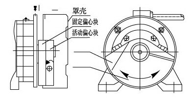 振動器激振力大小正比於偏心塊的質量,偏心距和角速度的平方。振動器每端出軸均有一個固定偏心塊和一個活動偏心塊、改變活動偏心塊與固定偏心塊之間的夾角即改變偏心質量,可得到不同的激振 力。電機激振力的大小等於固定偏心塊上的振動力標牌讀數乘以2/1000。電機出廠時固定偏心塊和活動偏心塊完全重合,激振力為額定激振力。